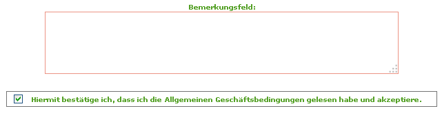 Im folgenden können Sie uns noch eine Mitteilung hinterlassen, falls Sie noch zusätzliche Wünsche in Bezug auf Ihre Bestellung haben. Um eine Bestellung abzuschicken müssen Sie unsere